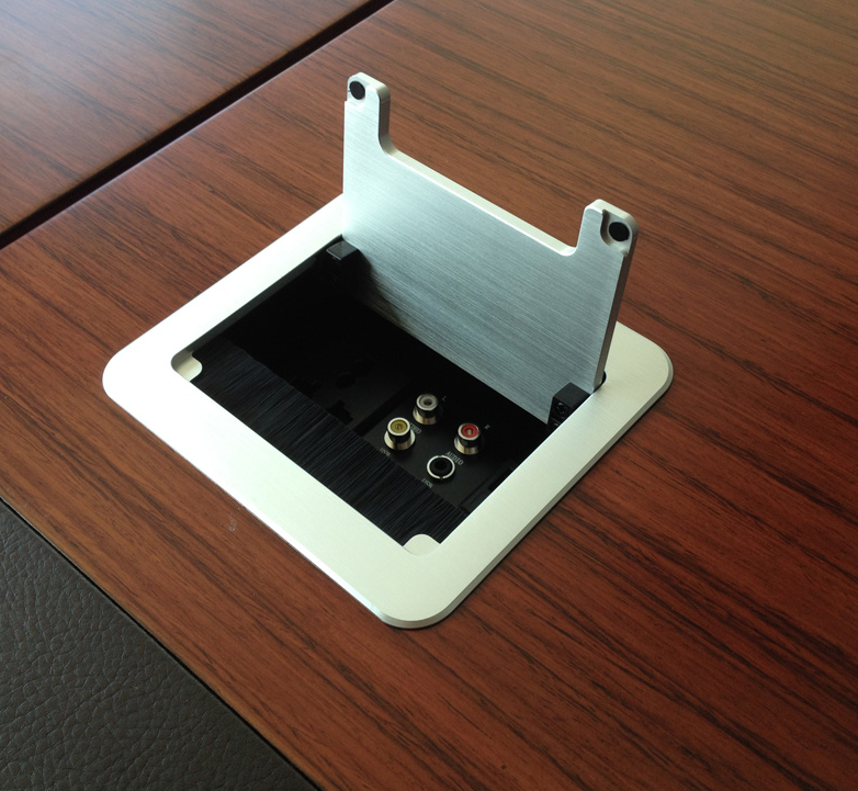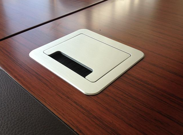 可选弹起式插座,翻转式插座,手动翻转插座,翻盖式插座等,下面提供一些班台安装我公司提供的翻盖式毛刷线盒插座实物图片: